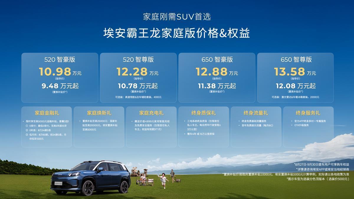 此次 AION V Home 霸王龙家庭版共推出四个版本,不同版本针对不同需求的消费者。